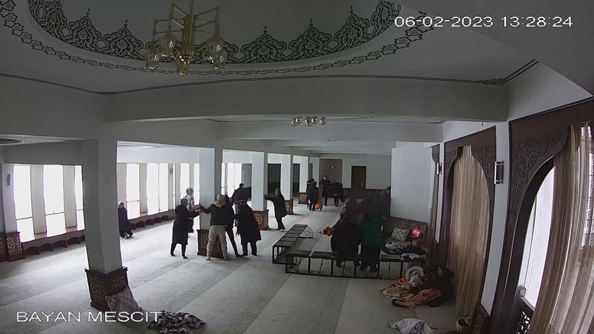 Caminin güvenlik kameraları tarafından kaydedilen görüntülerde, mescit, cami avlusu ve bahçedeki anlar yer aldı.