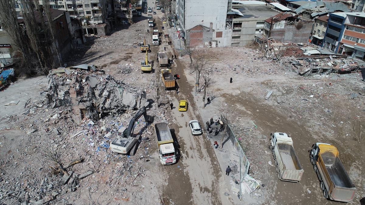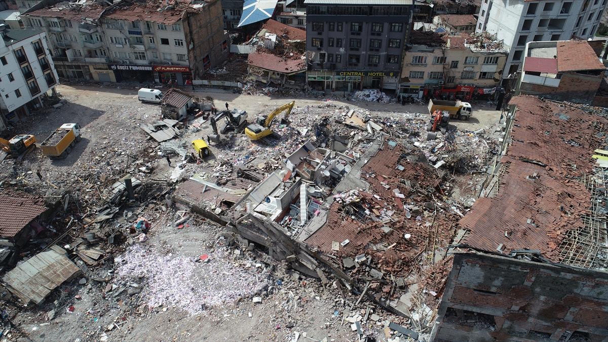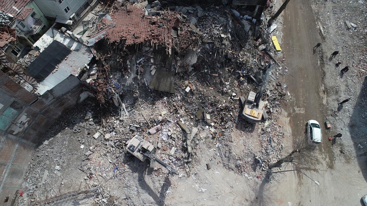 Öte yandan, kentin farklı noktalarında sürdürülen enkaz kaldırma çalışmaları havadan görüntülendi.