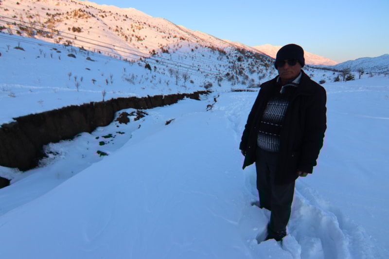 O anları anlatan Gözpınar Mahalle Muhtarı Kasım Kol, "Sabah 04.30 civarında bir sarsılma oldu. Sabah saatlerinde tedirginlik oldu ama mahallemizde bir şey olmadı. O gün saat bir buçuk gibi deprem bizi tam vurdu. Gördüğünüz gibi dağ yarıldı ve evler bayağı hasar gördü. Bu durumda kimse evlerinde yatmıyor. Taziye evinde ve köy kahvehanesinde kalıyoruz. Şu an perişanız. Deprem anında kendimizi zar zor dışarı fırlattık. Ardından mahallemizde bir sorun olup olmadığını kontrol etmek için gezdik. Çok şükür bir can kaybımız yok ama evlerde hasar var. 68 yaşındayım ve daha önce böyle bir şeyle hiç karşılaşmadım. Bazen ufak tefek sarsıntılar oluyordu ama böylesini ilk defa gördüm. Çok korkunç bir olay. İnşallah tekrar olmaz. Burası tarlaydı ve önceleri ekim yapıyorduk. Burası deprem öncesine kadar bir tarlaydı. Deprem burayı bu şekilde vurup geçmiş. Tam detayını bilmiyorum ama depremin merkez üssünün burası olduğunu söylüyorlar." ifadelerini kullandı.