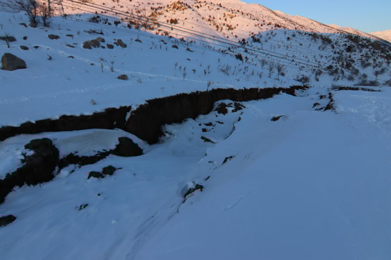 Depremin başladığı yer olarak belirtilen Gözpınar Mahallesi'nde dağ yarıldı.