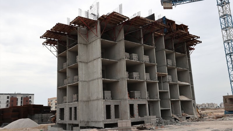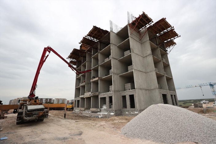 Afet bölgesinde depremzedeler için inşa edilen güvenli konutlar hızlıca yükseliyor.