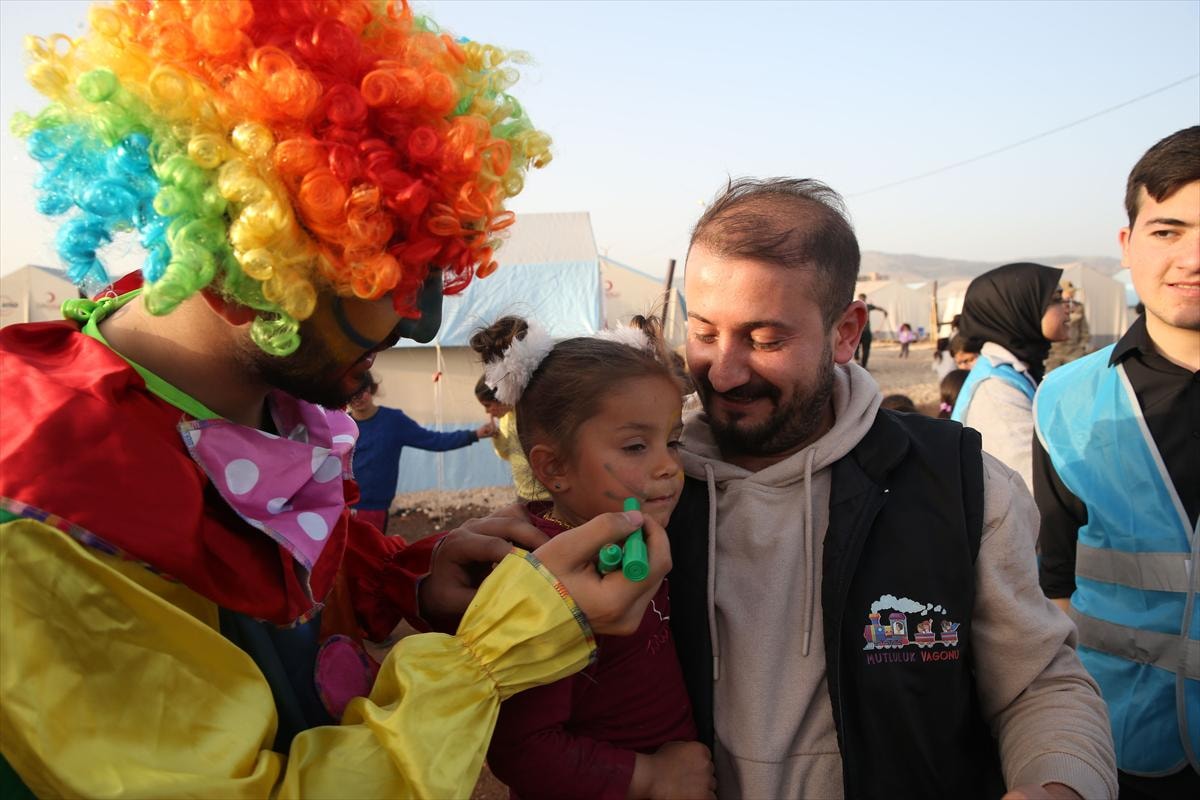İlk defa palyaço oldum. Çocuklarla beraber eğlendik, etkinlikler yaptık. Çocuklara hediyeler verdik. Gönüllü olarak burada olduğumuz için çok mutluyuz. Psikolojik olarak çocuklar çok kötü. Bir nebze de olsa onları mutlu etmek istiyoruz. Çocuklarda tebessüm oluşturabildiysek ne mutlu bize.