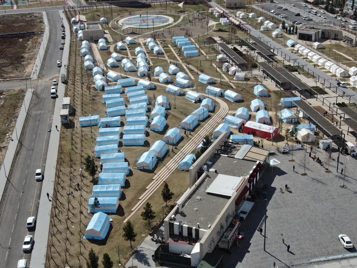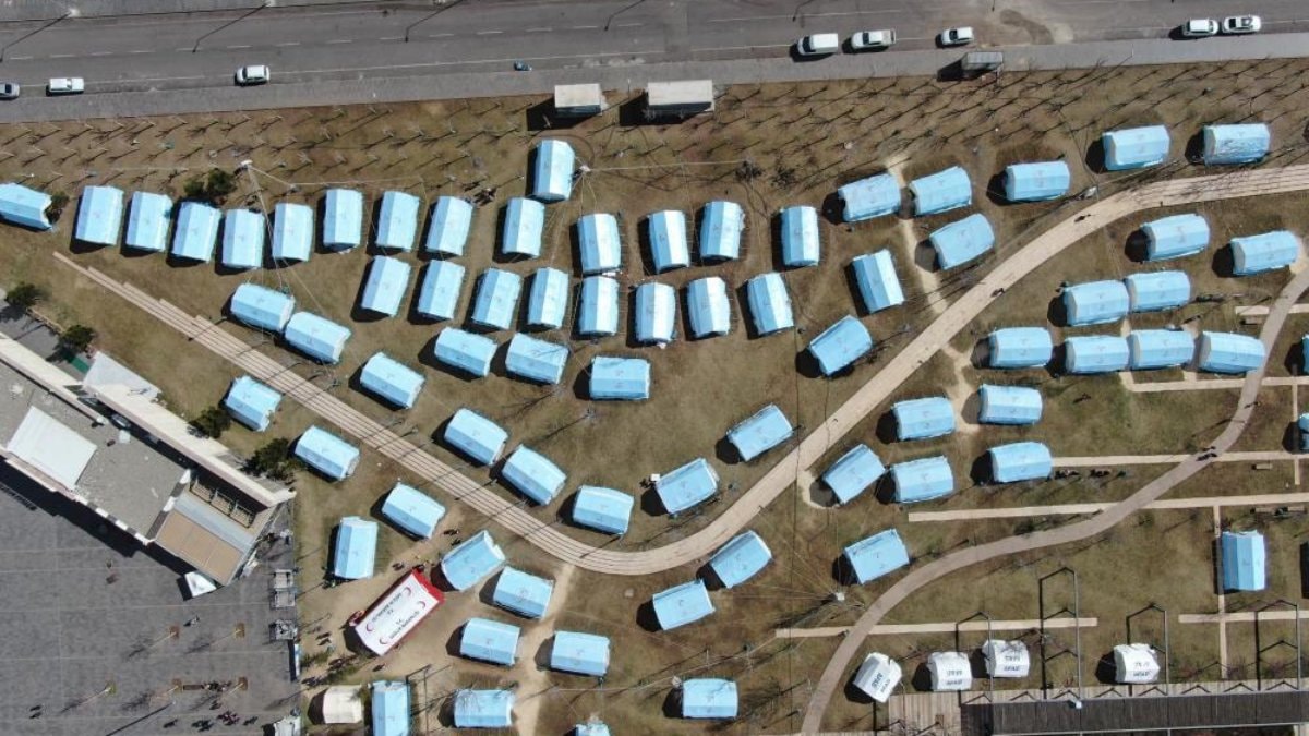 Sahada yapılan çalışmalarda, çadır kentler kuruldu.