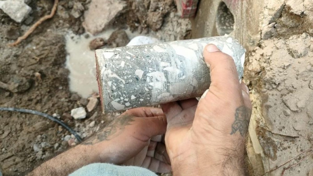 Normalde sağlam bir zeminde ortalama 15 dakika süren beton numunesi alma işleminin, mevcut zeminde 3 dakika gibi kısa sürede alındığı görüldü.