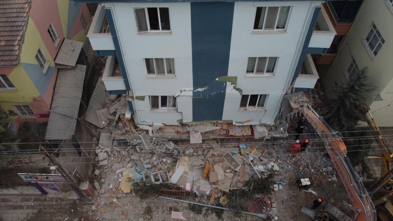 Ekip: Merkez, itfaiye karşısındaki bina tamamen çökmüş, altında insanlar olduğu söyleniyor, şu an müdahale ediyoruz.