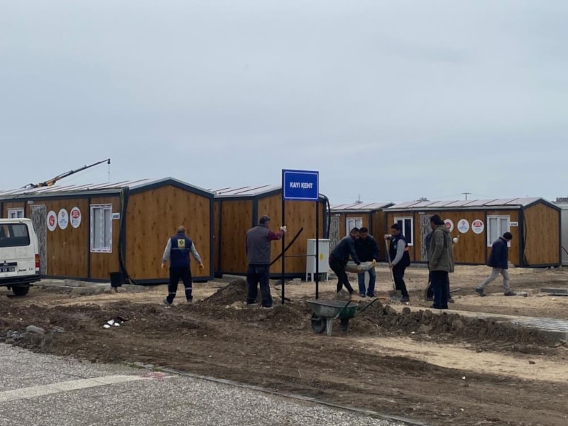 Çadır ve konteyner kurulumu sürerken, temelleri atılan afet konutları için de çalışmalar devam ediyor.
