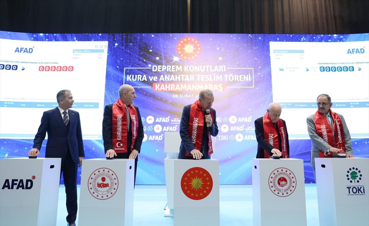 Kalıcı konutların inşasına da hemen başladık. İnşası biten konutların kura çekimi ve anahtar teslimini, geçtiğimiz günlerde Hatay ve Gaziantep’te yaptık. Bugün de Kahramanmaraş’ta 9 bin 289 konutumuzun kurasını çekiyor, anahtarlarını teslim ediyoruz. Bunlara ilave olarak 20 bin konutun da yapımı sürüyor.