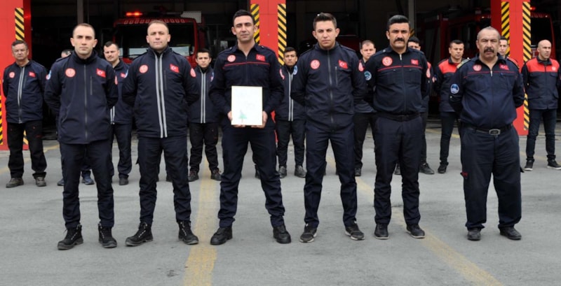 İtfaiye erleri, etkilendikleri bu resmi Kayseri'ye getirdi.