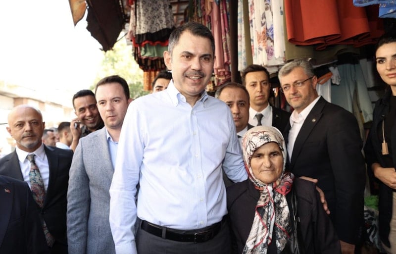 Bakan Murat Kurum, Kahramanmaraş'ta şantiye ziyaretlerinin ardından çarşıda esnafla bir araya geldi.