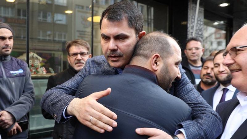 Depremzedeyi sarılarak teskin eden Bakan Kurum, “Allah razı olsun. Siz merak etmeyin, hiç üzülmeyin, tamam mı? Beraber üstesinden geleceğiz. Daha önce yaptık, yine yapacağız.” dedi.