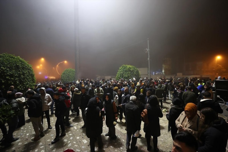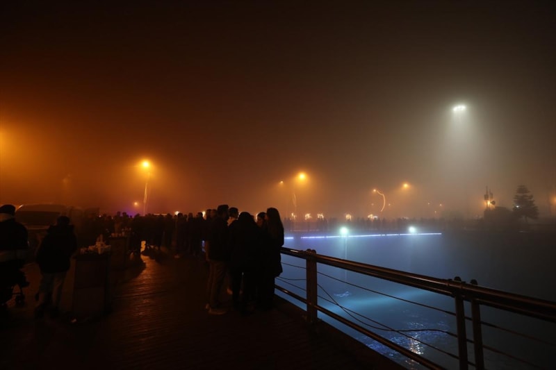 Yoğun sisin kapladığı Hatay'ın merkez Antakya ilçesinde vatandaşlar, akşam saatlerinden itibaren Cumhuriyet Meydanı'nda toplandı.