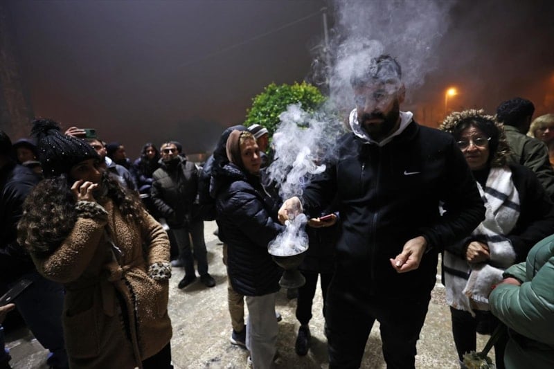 Gruplar halinde meydanda toplanan vatandaşlardan kimisi 6 Şubat gecesi yaşadıklarını anlatıyor, kimisi de buhur yakarak depremde kaybettikleri için dua ediyor.