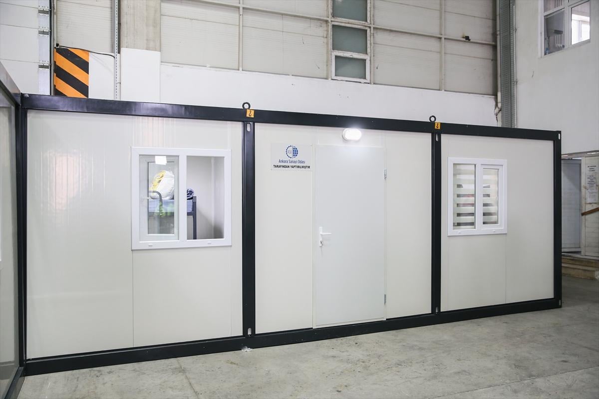 ASO 2. ve 3. Organize Sanayi Bölgesi'nde yer alan bir firma tarafından üretilecek konteynerler, aynı bölgedeki tır parkındaki araçlara yüklenerek deprem bölgesine ulaştırılacak.