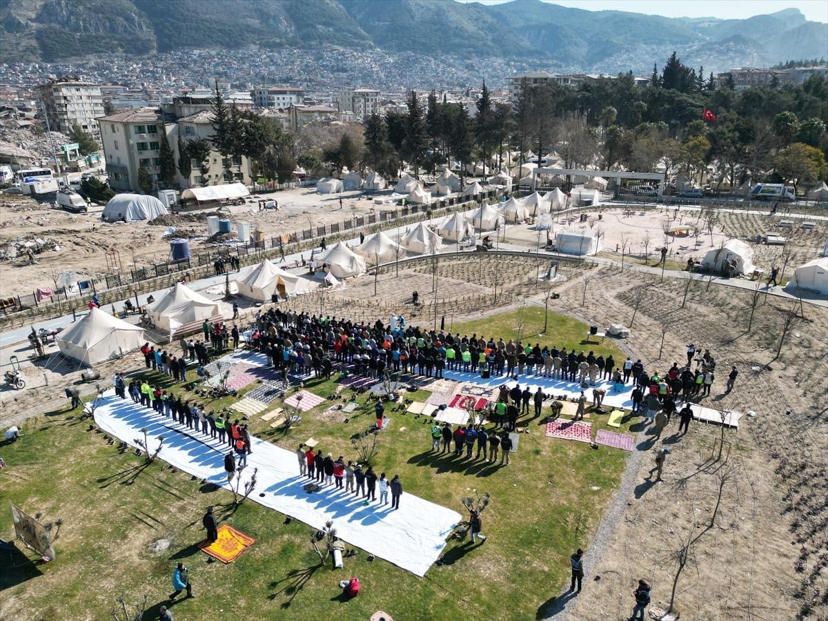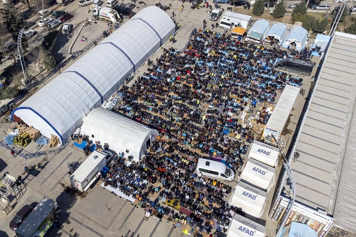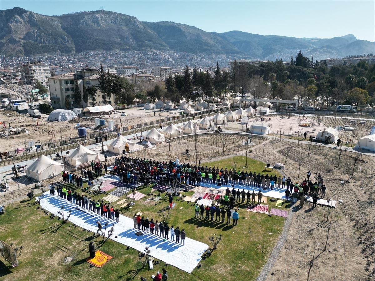 Deprem bölgelerinde ise cuma namazı yıkılan camilerin avlusu ve çadır kentlerinde kılındı. Birlikte saf tutan insanlar depremzedeler için dualar etti.