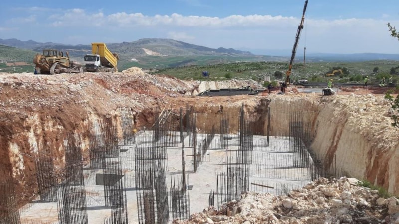 Zemin artı 4 kat olarak planlanan ve 6 farklı konut tipinin uygulanacağı bölgede zemin tamamen kayalık ve iş makineleri bu kayaları parçalayarak temel için yer açıyor.