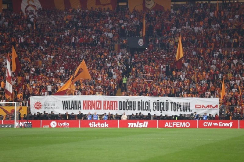Galatasaray ile Fenerbahçe arasındaki kritik derbiye iki takım, Cumhurbaşkanlığı İletişim Başkanlığının dezenformasyona karşı pankartlarıyla çıktı.