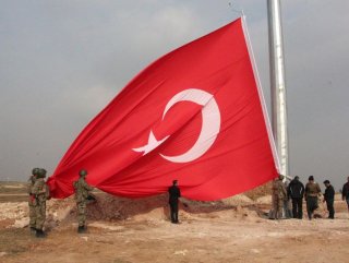 Kobani sınırına törenle dev Türk bayrağı asıldı