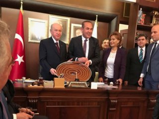 Bahçeli, kendisine sunulan ikramlarını beğenerek, “Her gün böyle ikramlarda bulunacaksanız Adana’ya gelelim. Bizi mahcup ediyorsunuz. Halka tatlı yemeyecek miyiz? Bize bakıyor kaç dakikadır” dedi.