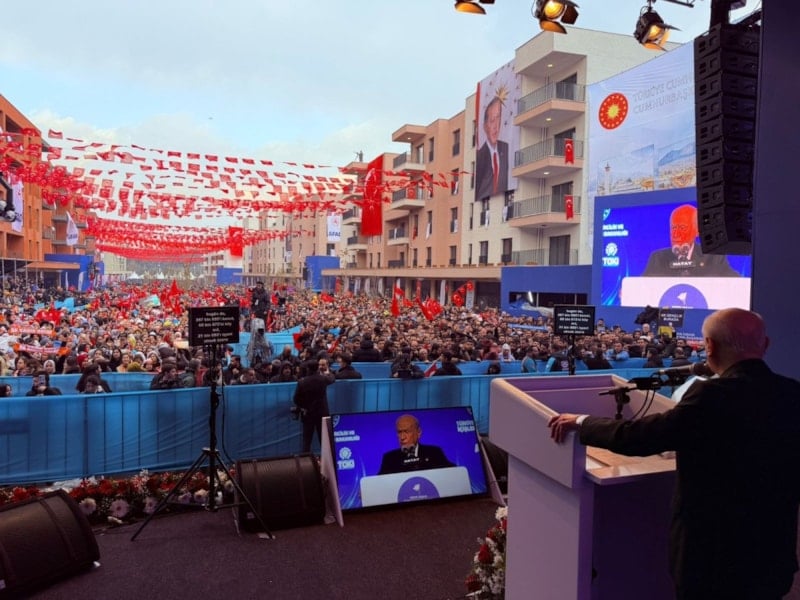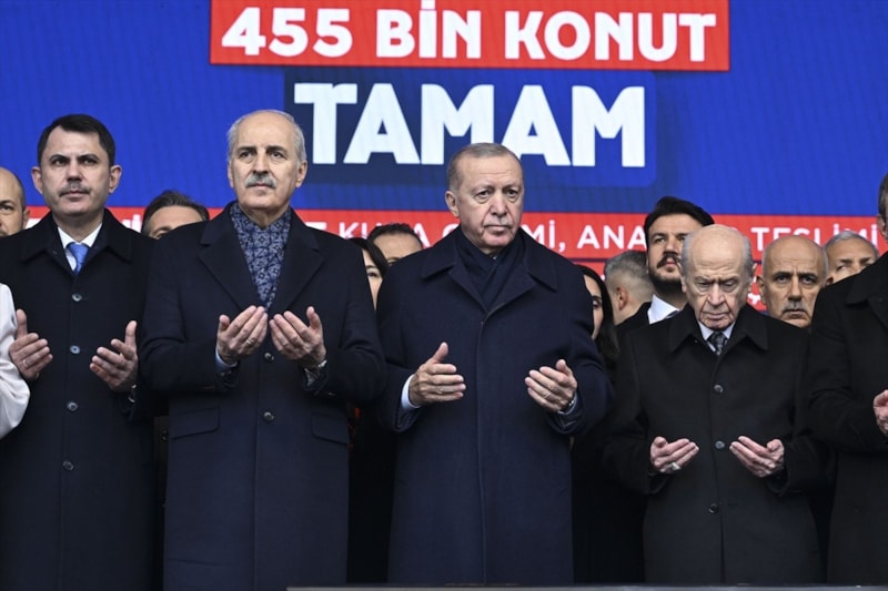 Asrın İnşa Seferberliği kapsamında bugün Hatay'da düzenlenen anahtar teslim törenine katılan MHP Genel Başkanı Devlet Bahçeli, "Günümüzün Süleyman'ı Cumhurbaşkanı Recep Tayyip Erdoğan, Sinan'ı da Murat Kurum Bey'dir" dedi.