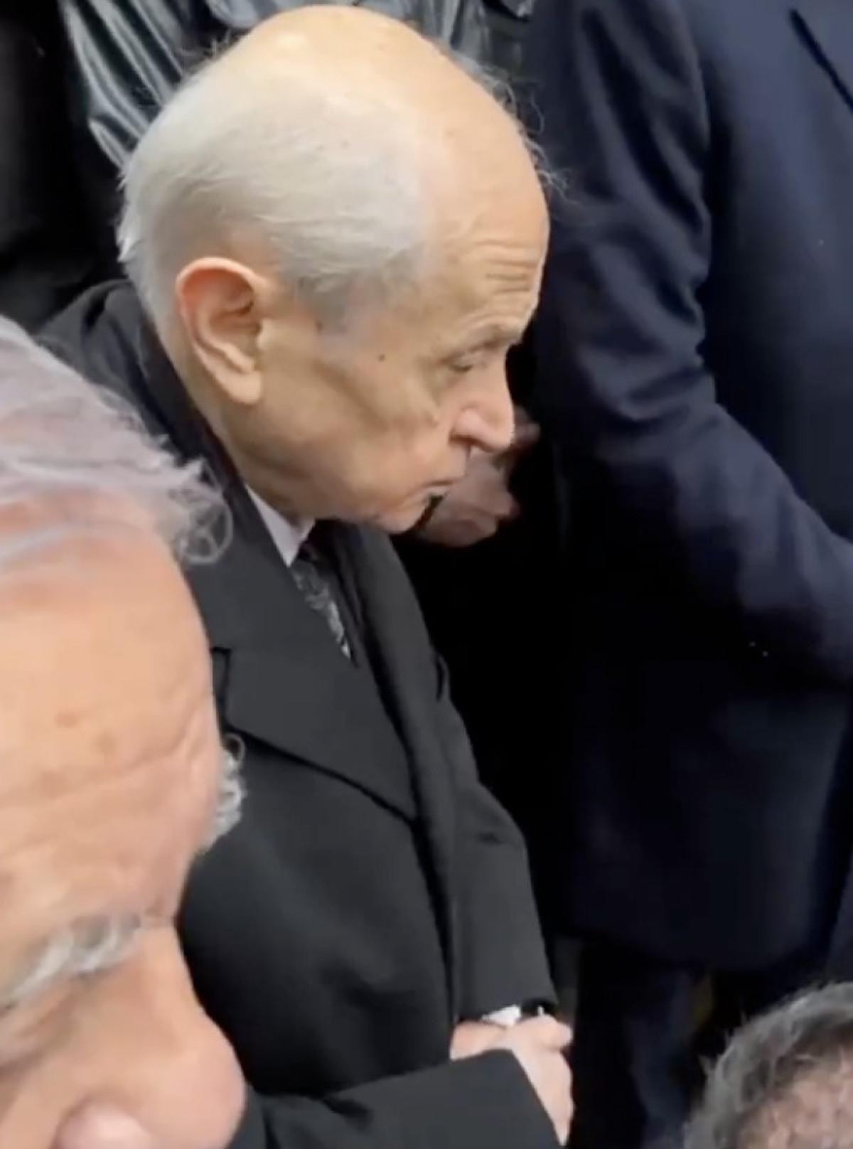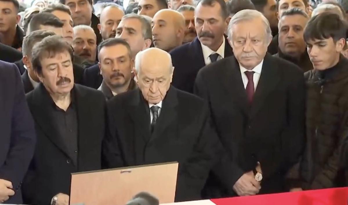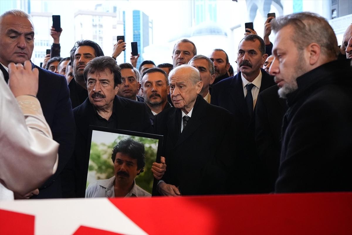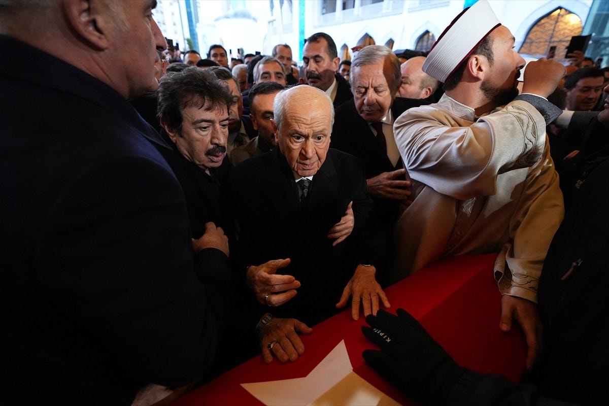 Cenaze törenine katılan Bahçeli, tabutun başında dua etti, tabutu okşadı ve usta sanatçının oğluyla kısa bir konuşma yaparak taziyelerini de iletti. Bahçeli'nin bu anlarda da bir hayli üzgün olduğu görüldü.