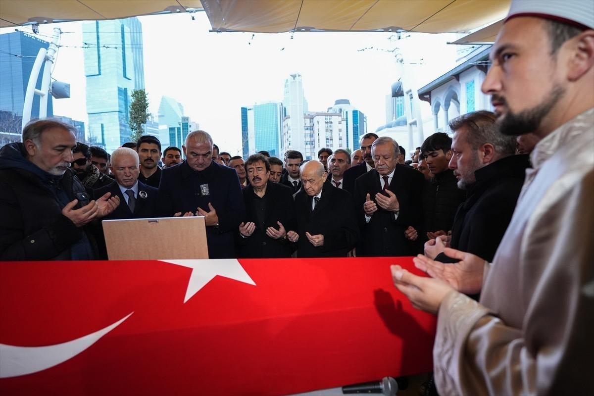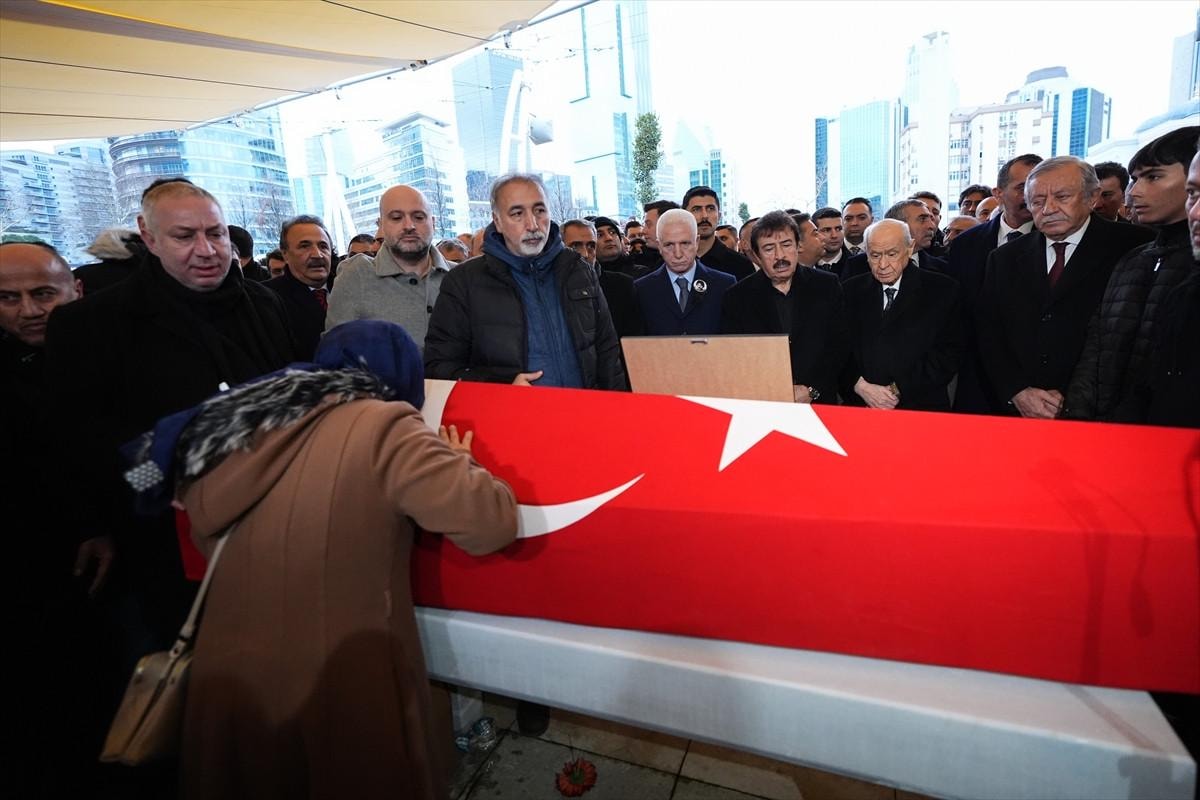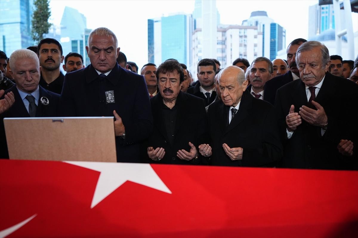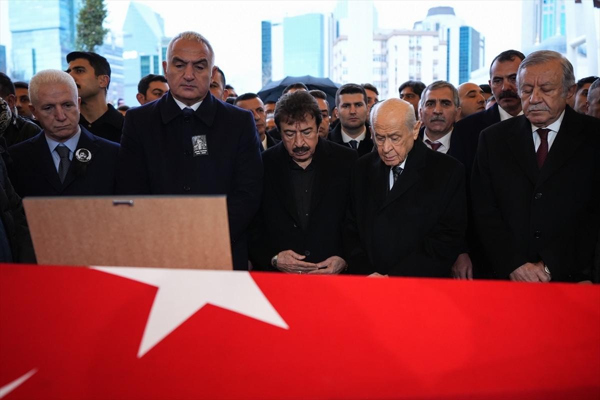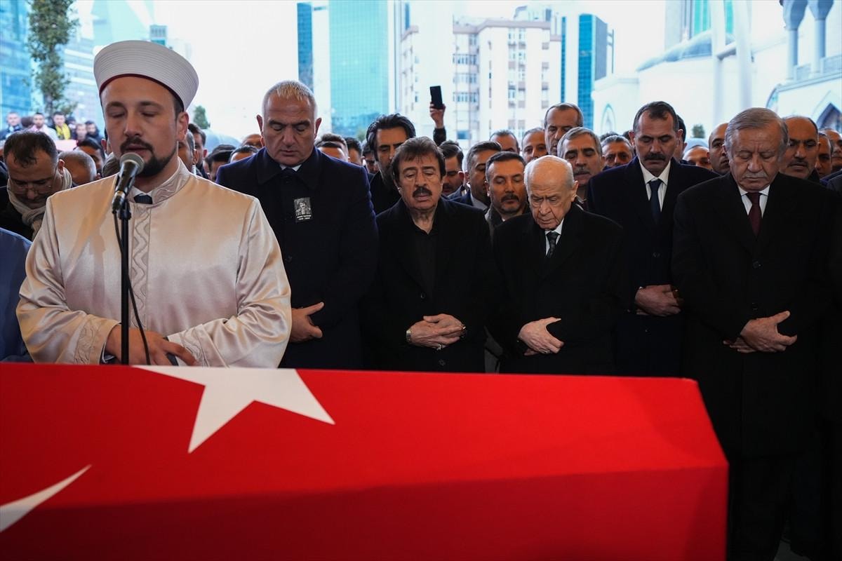 Cenaze törenine katılan Bahçeli, tabutun başında dua etti, tabutu okşadı ve usta sanatçının oğluyla kısa bir konuşma yaparak taziyelerini de iletti. Bahçeli'nin bu anlarda da bir hayli üzgün olduğu görüldü.