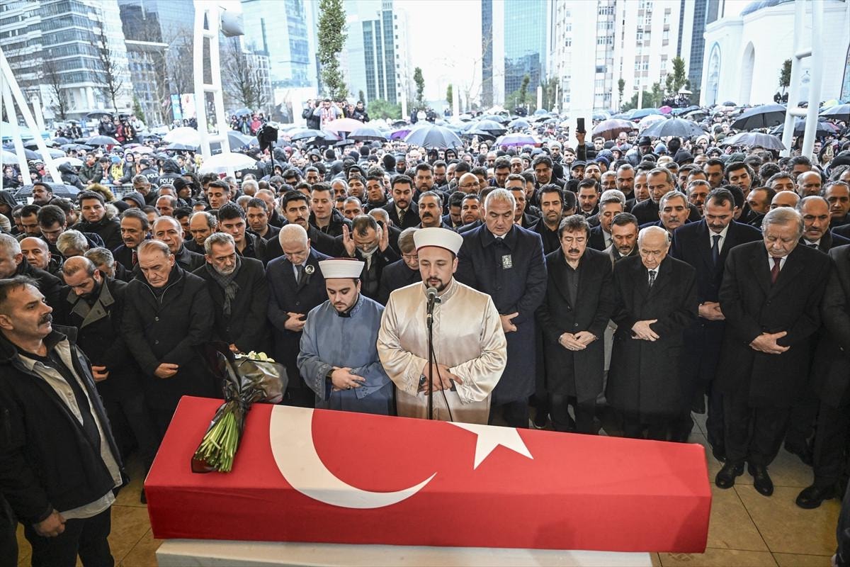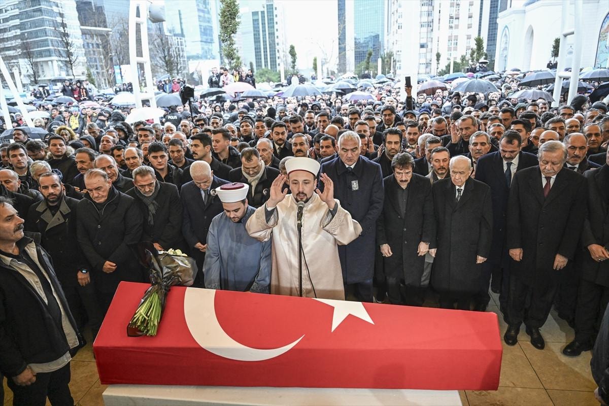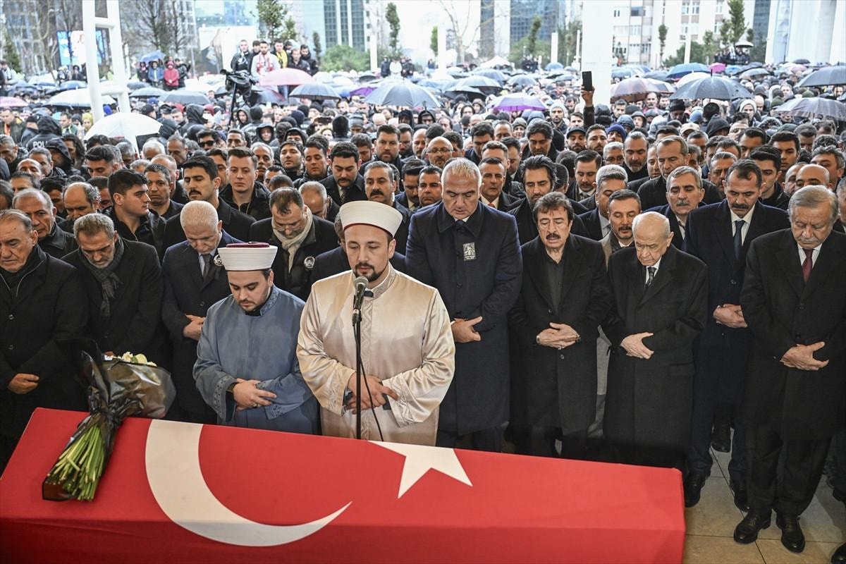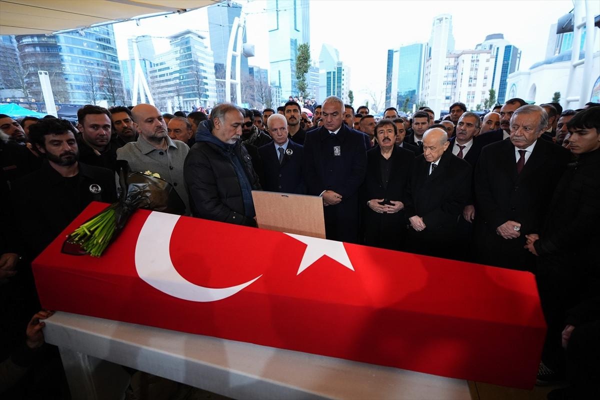 Cenaze törenine katılan Bahçeli, tabutun başında dua etti, tabutu okşadı ve usta sanatçının oğluyla kısa bir konuşma yaparak taziyelerini de iletti. Bahçeli'nin bu anlarda da bir hayli üzgün olduğu görüldü.