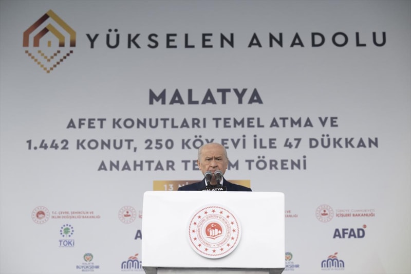 MHP Genel Başkanı Bahçeli, Malatya Deprem Konutları Temel Atma ve 1442 Konut, 250 Köy Evi ile 47 Dükkan Anahtar Teslim Töreni'nde konuştu.
