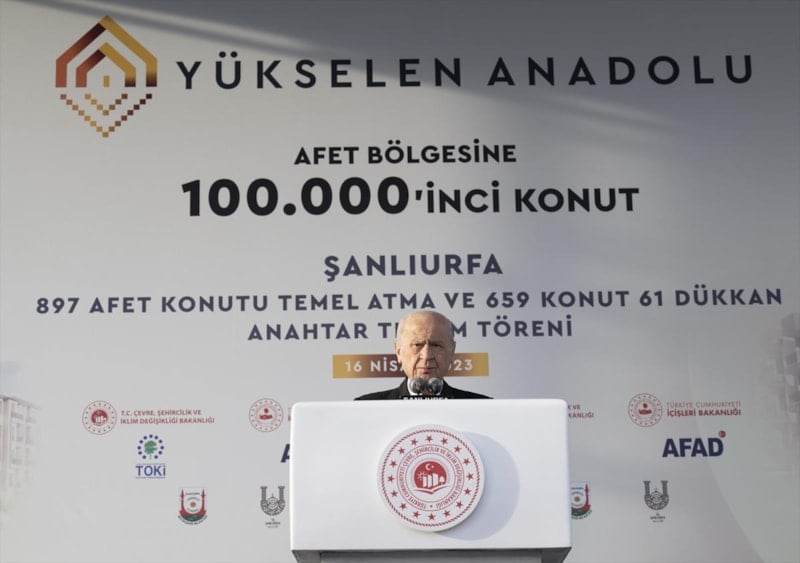 Şanlıurfa'da afet konutlarının temel atma töreninde konuşan MHP Lideri Devlet Bahçeli, 71 yılda kurulan 51 koalisyonun zorluklarını vurgulayarak "Şimdi istikrar var, şimdi gelecek var, şimdi Cumhur İttifakı var" dedi.