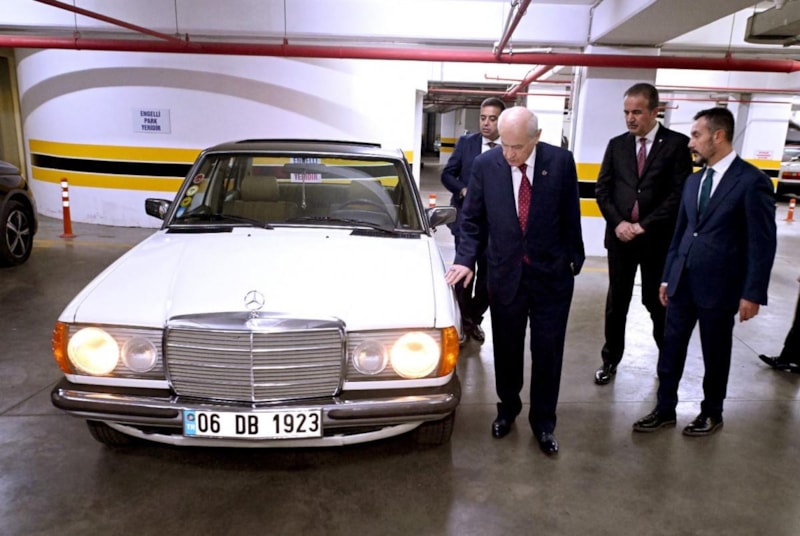 Klasik otomobillere tutkusuyla tanınan MHP Genel Başkanı Devlet Bahçeli, partisinin Antalya Milletvekili Abdurrahman Başkan'a 1982 model Mercedes otomobil hediye etti. Aracın plakasının ' DB 1923' olması dikkat çekti.