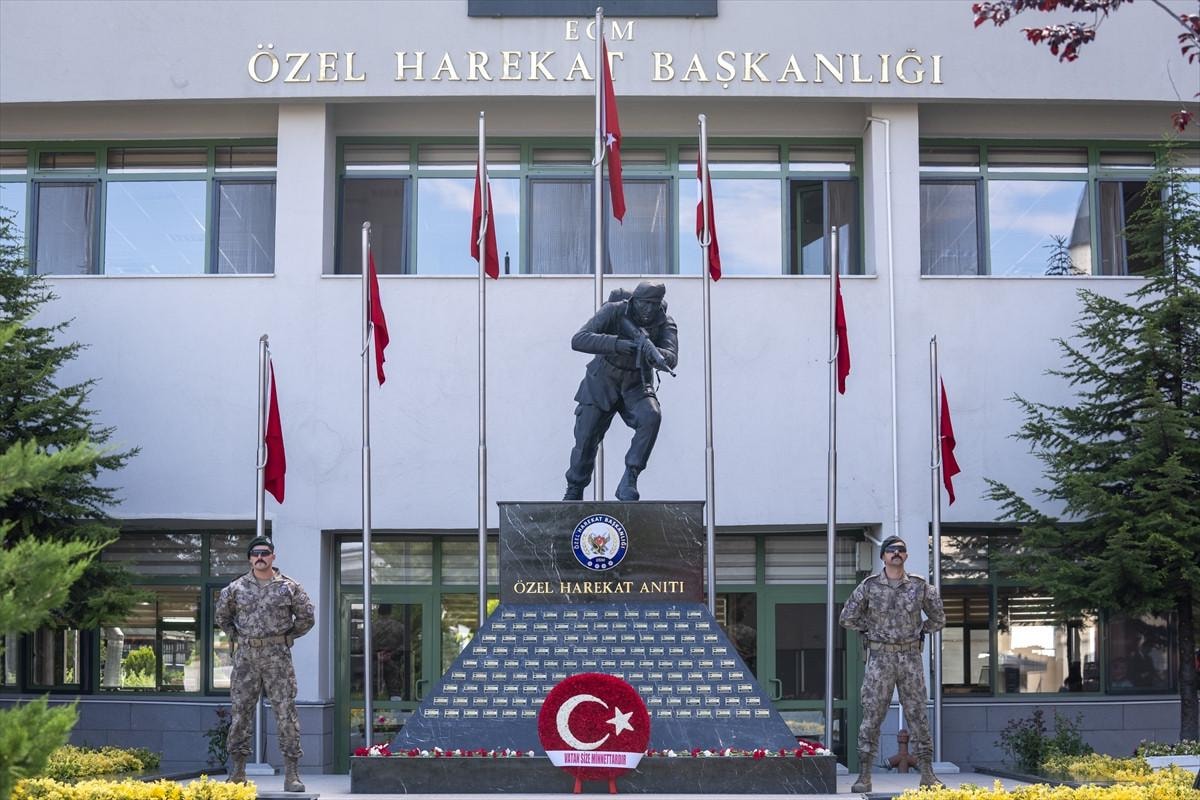 Gölbaşı ilçesindeki Özel Harekat Başkanlığı'na gelen Bahçeli'yi, Emniyet Genel Müdürü Erol Ayyıldız ve beraberindeki heyet karşıladı.