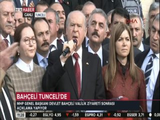MHP Lideri Devlet Bahçeli Tunceli Valiliği önünde yaptığı konuşmada Tunceli'ye gelmelerini yabancı, hasım bir ülkeye gelmeleri gibi engellenmeye çalışıldığını söyledi.