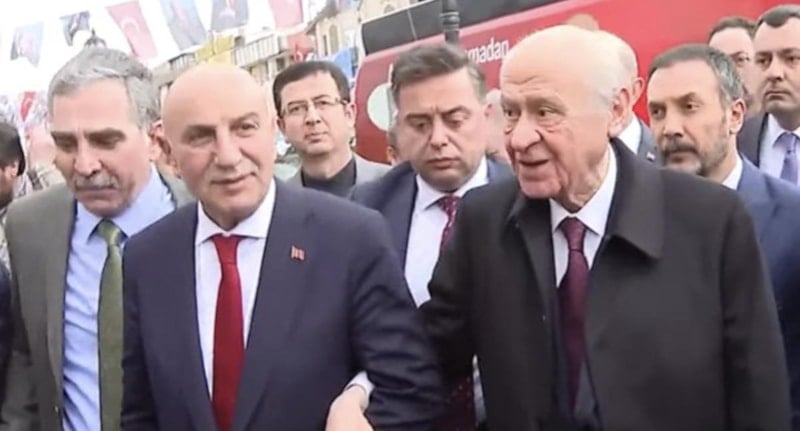 MHP Genel Başkanı Devlet Bahçeli, Cumhur İttifakı Ankara Büyükşehir Belediyesi Başkan adayı Turgut Altınok’la beraber Keçiören'de halklı selamladı ve Altınok'un daveti üzerine belediyeye geçerek başkanlık makamında ağırlandı.