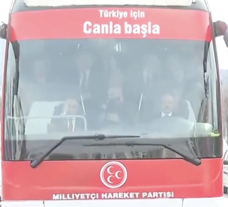 İstanbul dışında da Ankara'da gündem bir hayli hareketli olurken Milliyetçi Hareket Partisi Genel Başkanı Devlet Bahçeli ve Cumhur İttifakı Ankara Büyükşehir Belediyesi Başkan adayı Turgut Altınok, seçim otobüsü içerisinde Keçiören'de halkı selamladı.