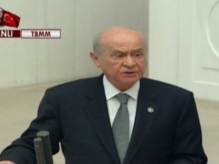 MHP lideri Bahçeli konuşma yapmak için kürsüye ilerlerken, oturumu izleyen Cumhurbaşkanı Erdoğan'ı ve Başbakan Ahmet Davutoğlu'nu başıyla selamladı, o sırada AK Parti sıralarında alkış sesleri yükseldi.