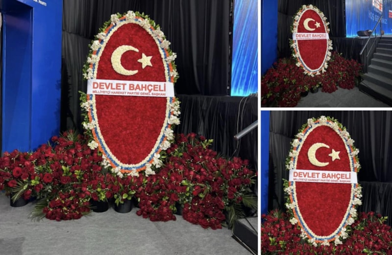 MHP'nin resmi sosyal medya hesabından yapılan paylaşımda, üzerinde Bahçeli'nin isminin yazdığı aranjmanın fotoğraflarına yer verildi.