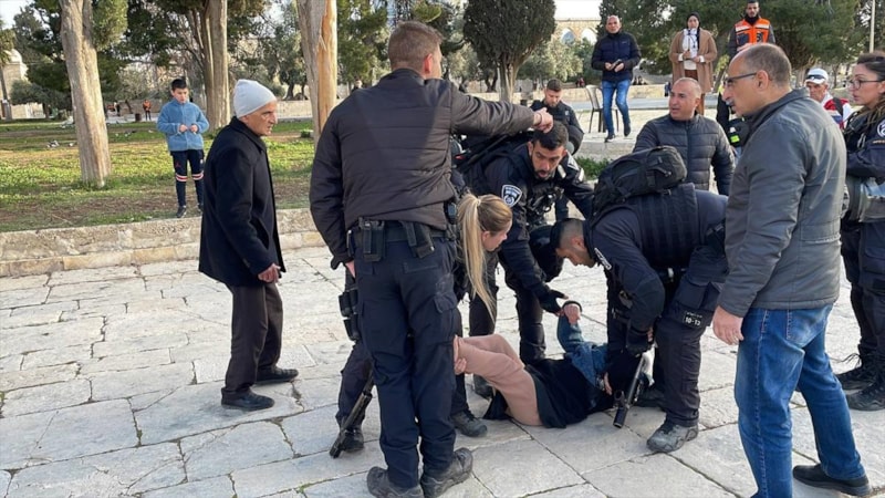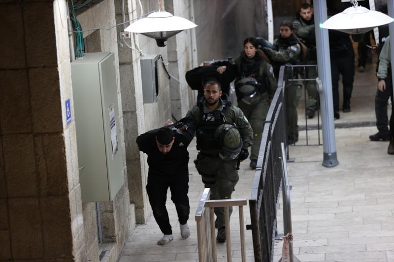 İsrail güçleri, sahur vaktinde Aksa'ya düzenlediği baskın sırasında, Kıble Mescidi'ne sığınanlara şiddet kullanarak müdahale edip kutsal mabedi savaş alanına çevirdi.