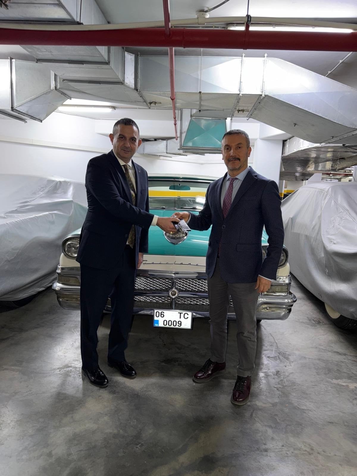 06 TC 0009 plakalı 1958 model otomobil, MHP Lideri Bahçeli’nin özel kalem müdürü Murat Çekiler tarafından teslim edildi.