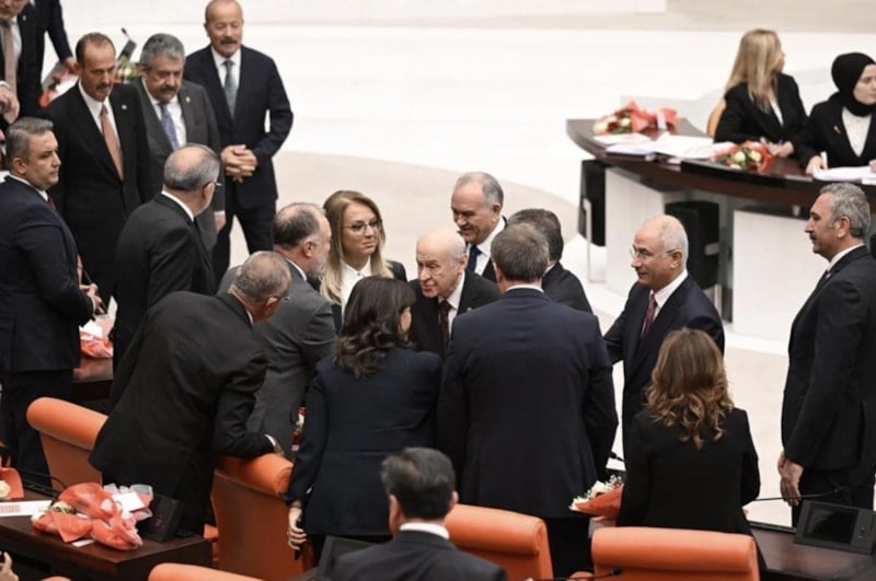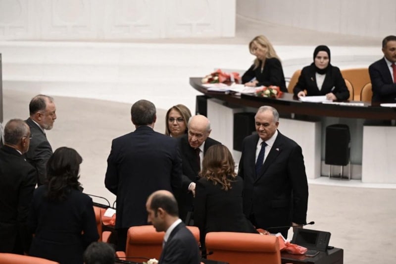 Devlet Bahçeli, Meclis'in yeni yasama yılının açılışında DEM Partili yöneticilerle tokalaşmasına ilişkin, "milli birlik ve kardeşlik mesajı" olduğunun altını çizdi.