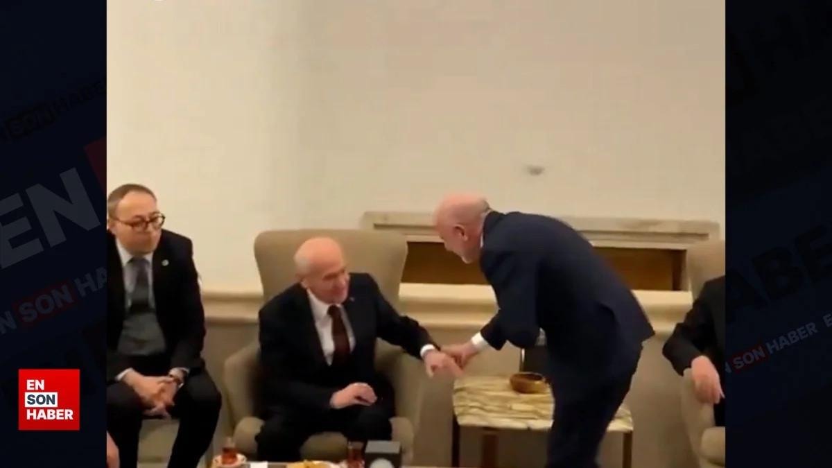 Sarıgül ile Öztunç'un, Bahçeli ile selamlaştığı anlar kameralara saniye saniye yansıdı.