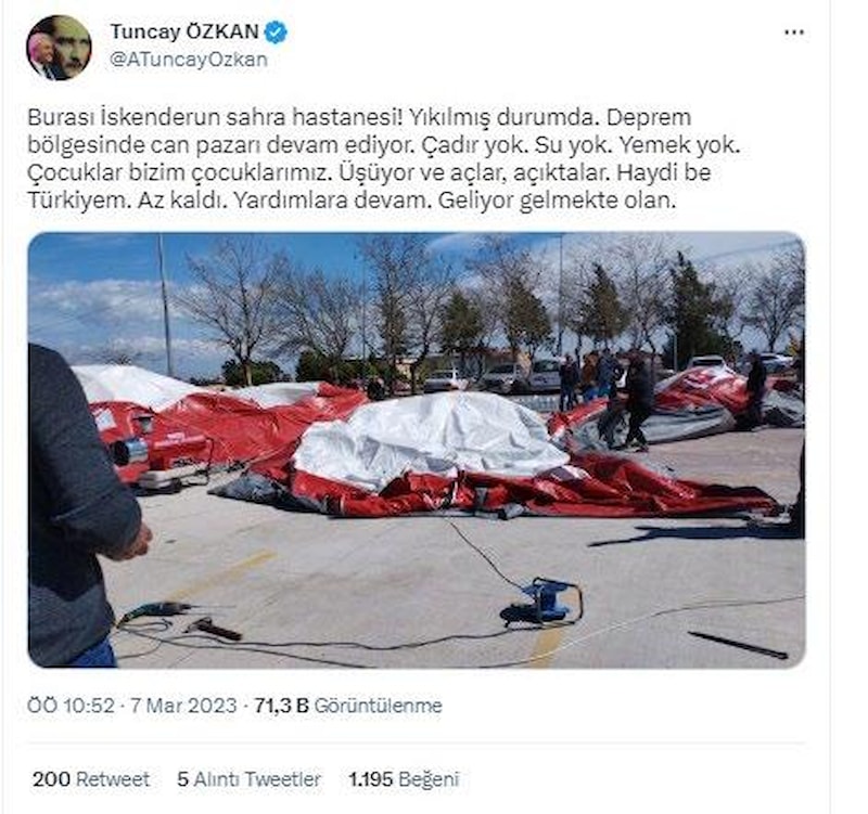 - İskenderun’da Kurulan Sahra Hastanesi Çökmüş Durumda, Bölgede Çadır Yok” İddiaları
