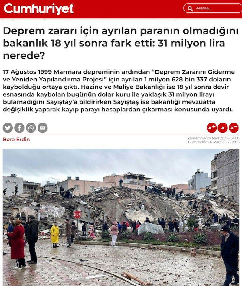 - “1999 Sonrası Deprem Zararı için Ayrılan 31 Milyon TL Ortada Yok” İddiaları