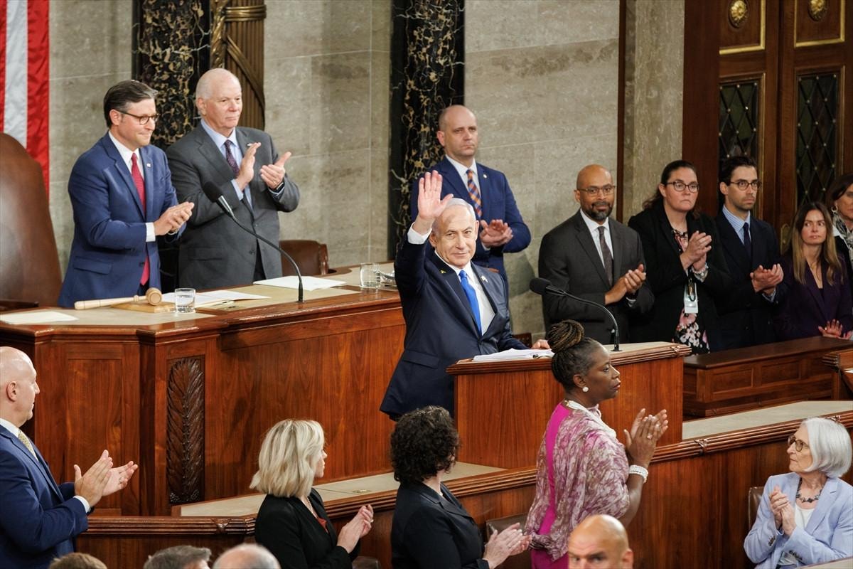 Uluslararası Adalet Divanı’nda soykırımdan yargılanan, Uluslararası Ceza Mahkemesi savcısının tutuklanmasını istediği Netanyahu'nun, ABD Kongresi’nde çoşkuyla karşılanması insanlık tarihine kara bir leke olarak geçmiş oldu.