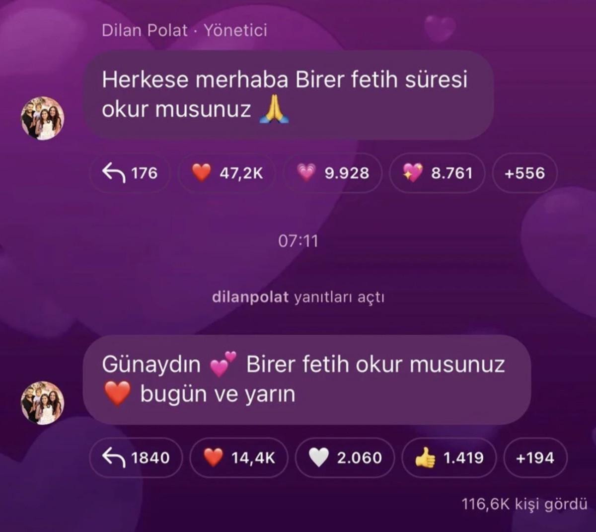 Polat, “Günaydın. Birer fetih okur musunuz? Bugün ve yarın.” diye yazdı.