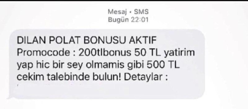 Durumu fırsata çeviren sanal bahis sitesi dolandırıcıları, “Dilan Polat bonusu” başlıklı mesajlar atmaya başladı.