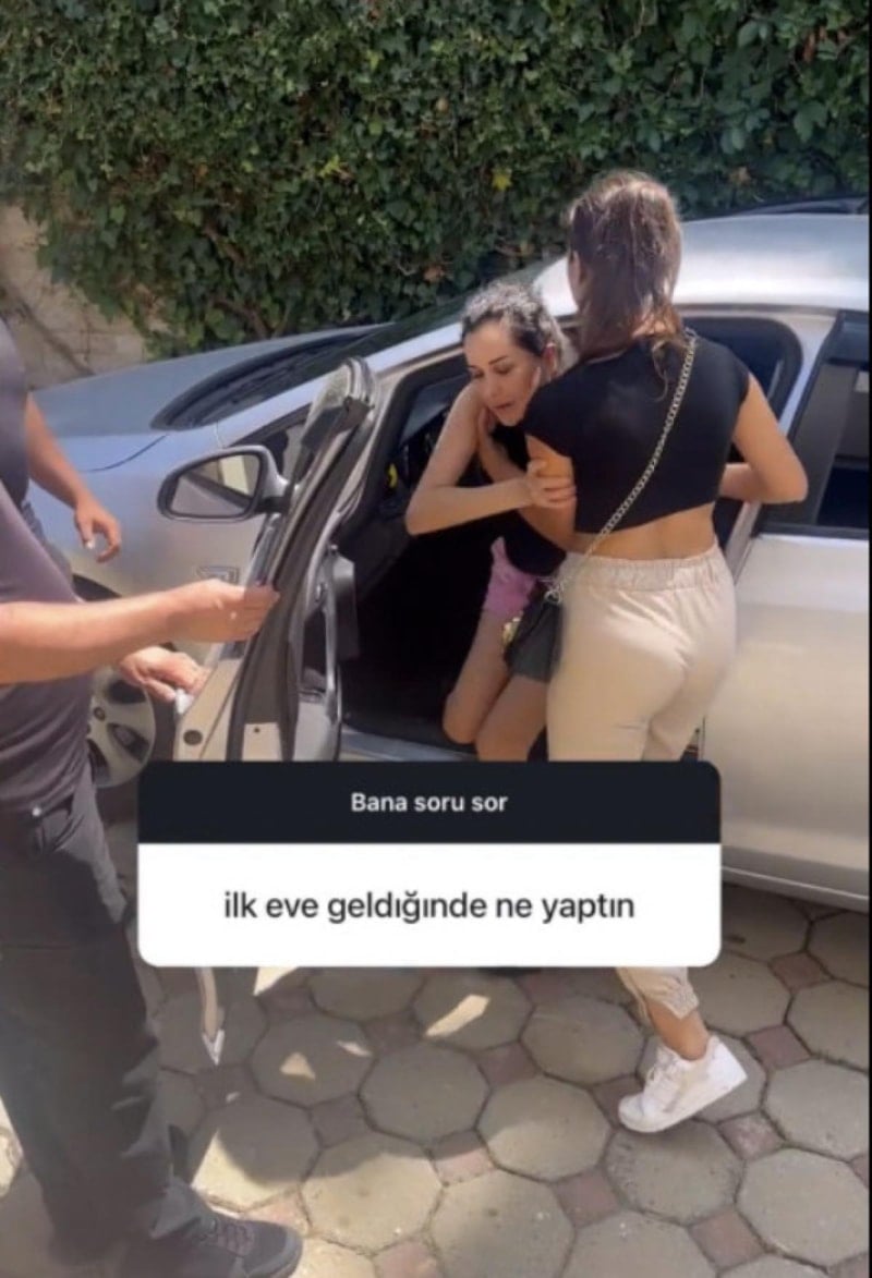 İki kişinin desteğiyle eve ulaşmaya çalışan Dilan Polat, videonun sonunda baygınlık geçirdi.