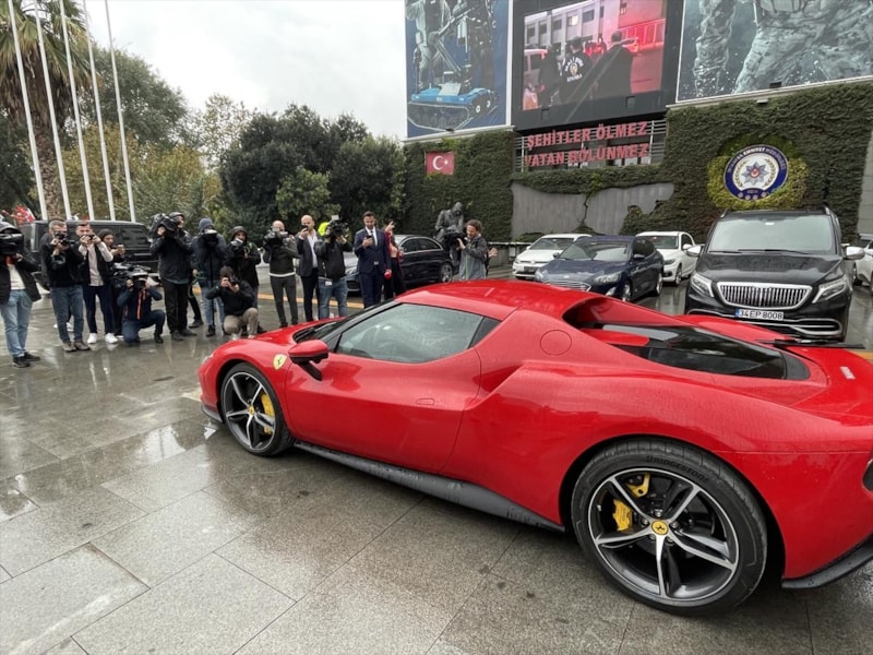 El konulan 24 araçtan 13 tanesi İstanbul İl Emniyet Müdürlüğünün bahçesinde basına gösterildi.