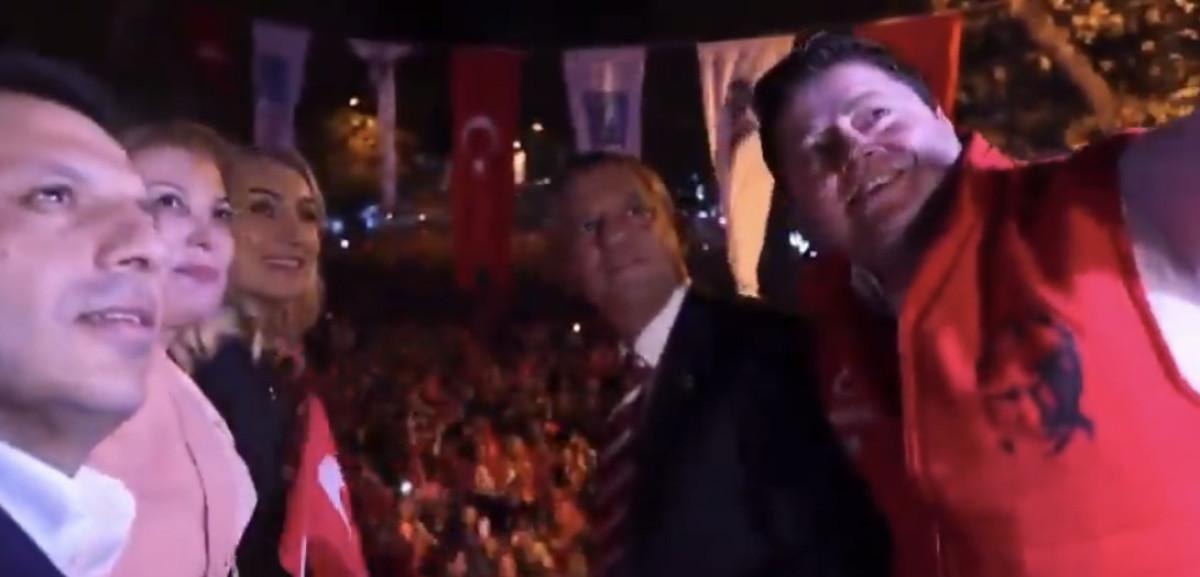 - O anlar selfie ile kaydedilirken, Özgür Özel'in zafer işareti yaptığı görüldü.