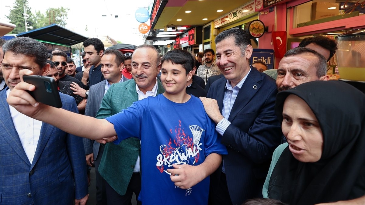 Vatandaşlarla sohbet eden Çavuşoğlu ile Oğan, cumhurbaşkanı seçiminin ikinci turunun yarın yapılacağını hatırlatarak, sandığa gitmelerini istedi.