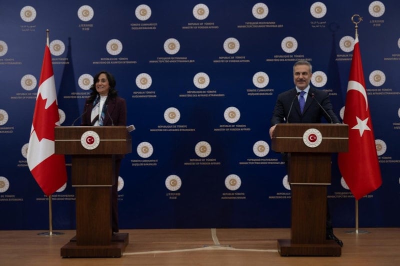 Görüşmenin ardından ortak basın toplantısında konuşan Bakan Fidan, “Sayın Cumhurbaşkanımız ve Kanada Başbakanı Sayın Mark Carney arasındaki liderler ilişkisi, gerçekten ortak vizyona dayalı ve iki ülkenin çıkarını gözeten ve dünya barışına, ekonomisine de katkı yapmayı hedefleyen model bir ilişki olma yönünde; bu iki liderin bize verdiği vizyoner stratejik yol gerçekten önemli. Sayın Carney, başbakan olduğu andan itibaren gerçekten Kanada'nın hem dış politikasında hem de ekonomi politikalarında son derece olumlu, dramatik değişiklikler yapmakta. Biz de bunu takdirle takip ediyoruz. Bu politik değişiklikler hem dünya barışı hem de dünya ekonomisi için önemli bir anlam ifade ediyor diye düşünüyoruz” dedi.