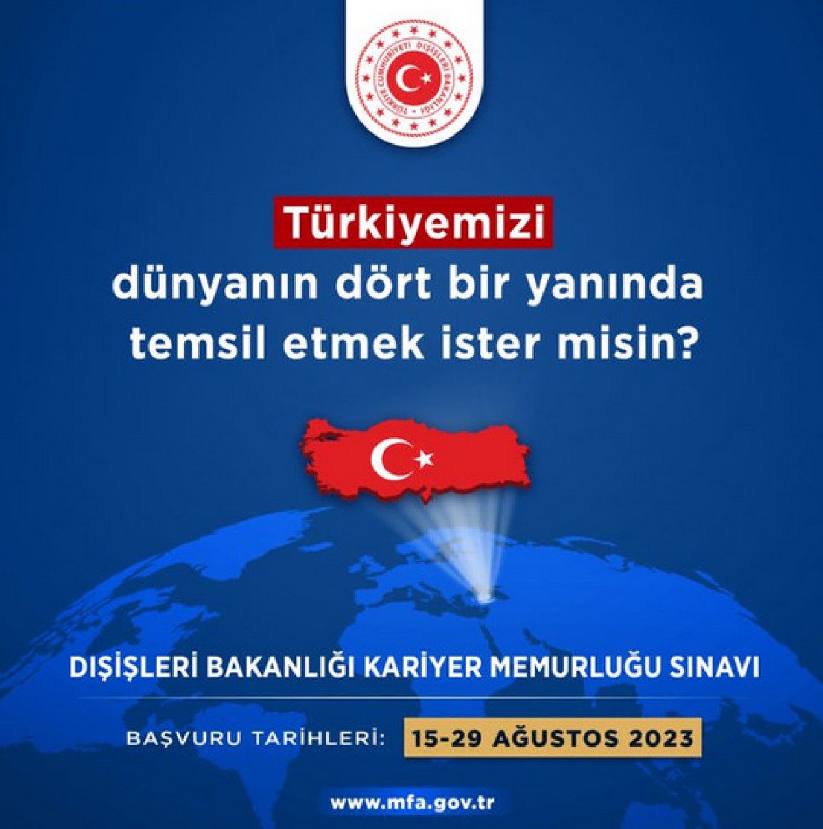 35 yaşını doldurmadıysan, İlanda belirtilen lisans/yüksek lisans bölümlerinden mezunsan, Yabancı dil yeterliliğin varsa, Türk Diplomatı olarak bayrağımızı yurtdışında taşıma düşüncesi seni heyecanlandırıyorsa,